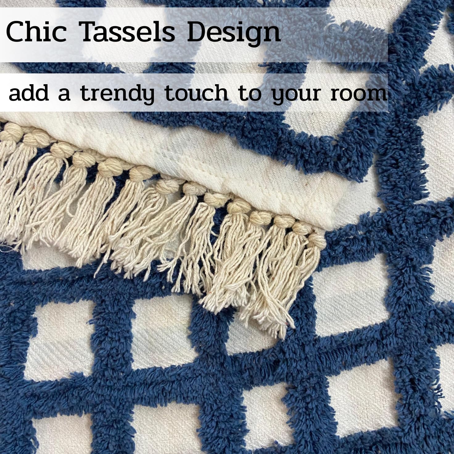 Elegant White & Blue color with handcrafted Tufted throw with tassels; adds a modern yet cozy touch to any space.