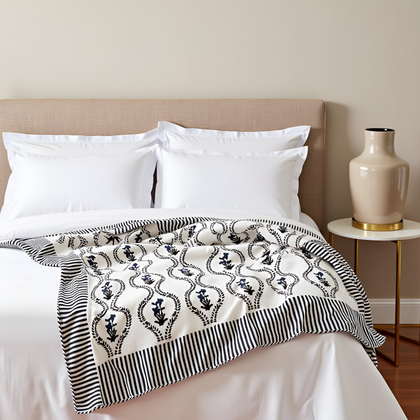 Elegant White color with printed design; adds a modern yet cozy touch to any space.