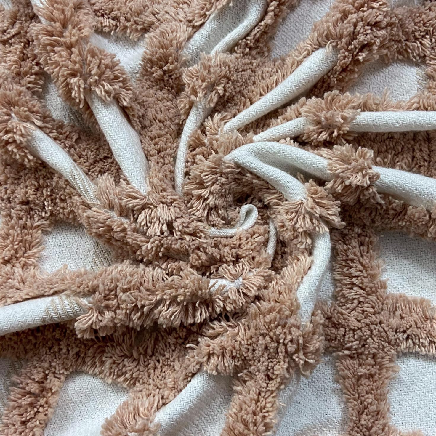 Elegant White & Summer Pink color with handcrafted Tufted throw with tassels; adds a modern yet cozy touch to any space.