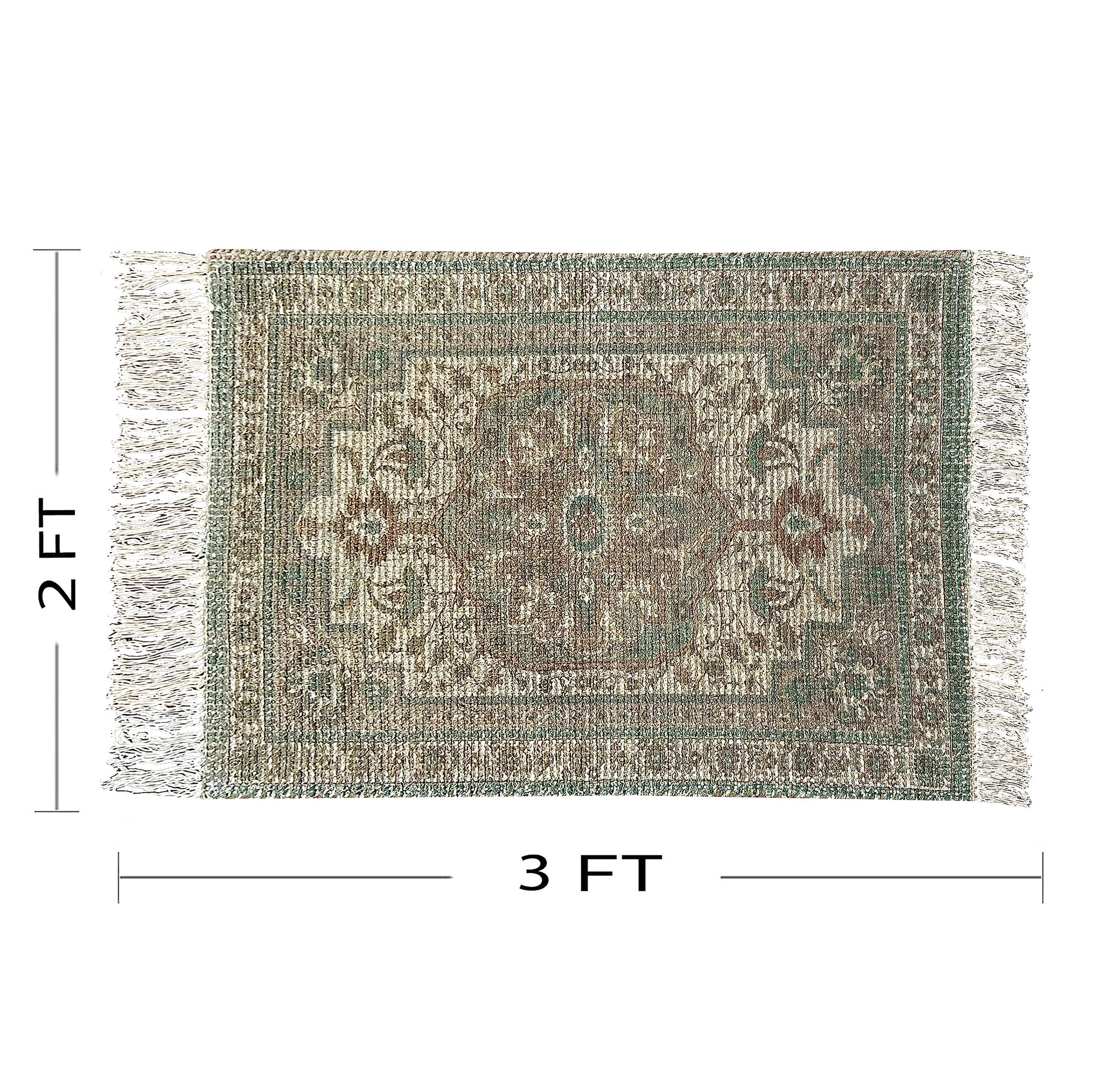 Braided Cotton & Jute Printed Floor Rug – Aegean Green | 2x3 Feet (24x36 Inches)