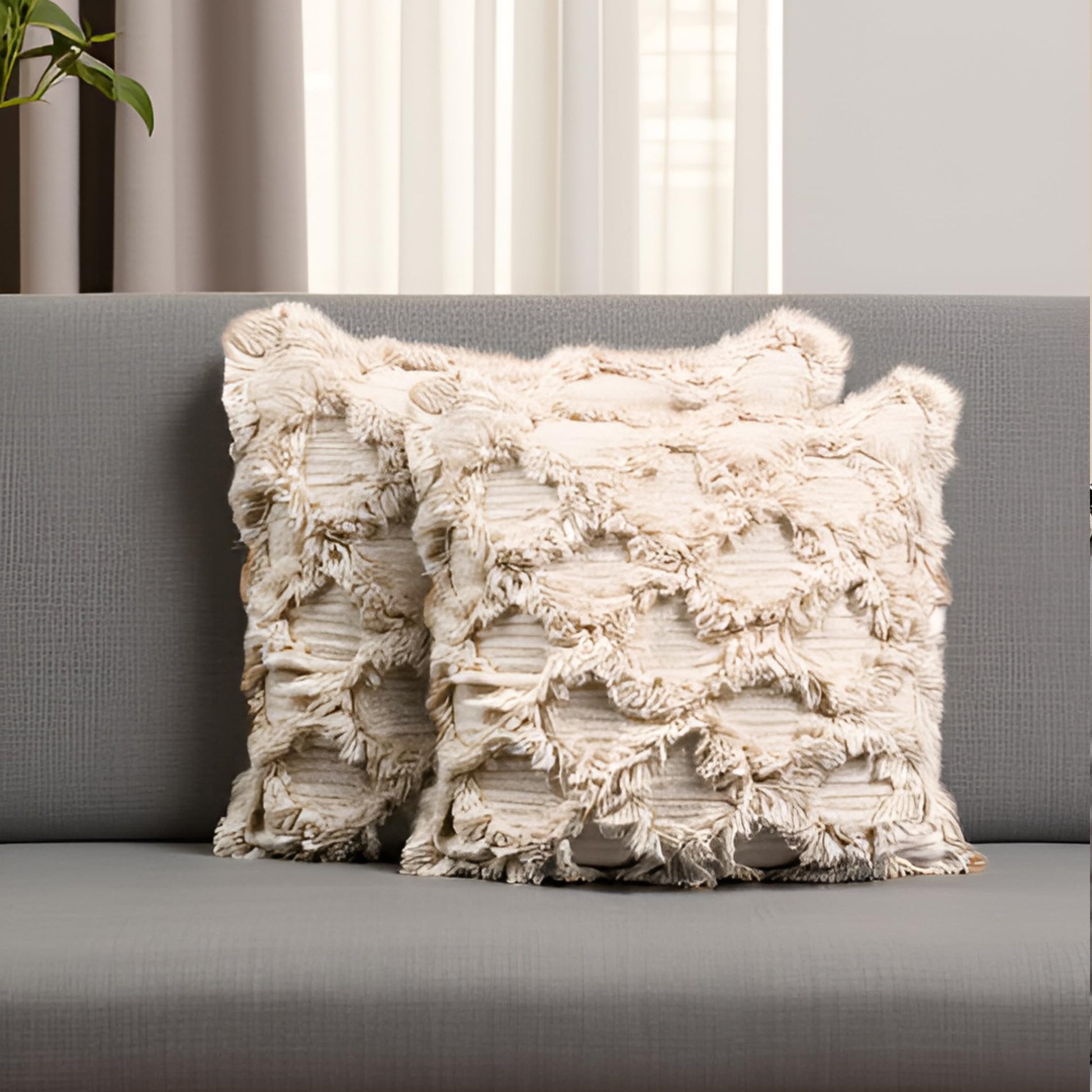 Decorative Tufted Cotton Cushion Cover | Cream | 18x18 Inches (45x45 cm)